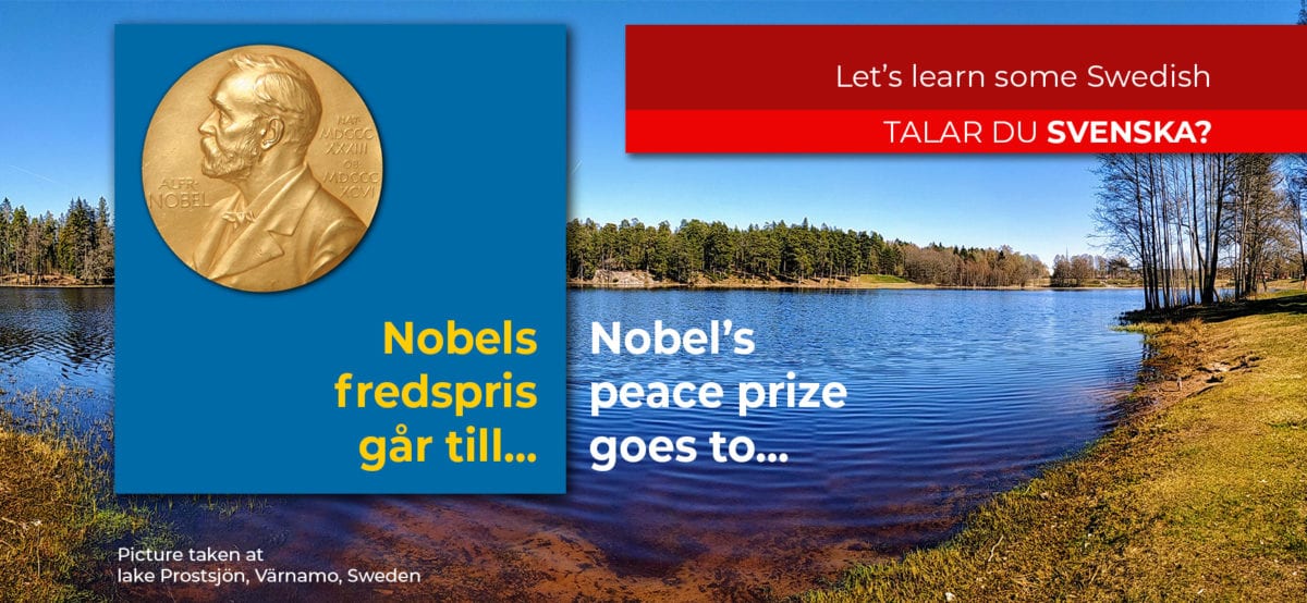 Despite the multi-national character of the prize, and the fact the prize itself is not presented in this way, we selected this theme and this sentence to start with our “Talar du svenska?” series. It’s easy to relate with English, and actually makes sense as a prize presenting hook. Click the image to hear the sound sample.