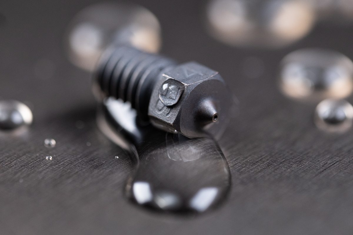 Slice's innovative Low Gamma coating lowers the surface energy of the nozzle, preventing plastic buildup around the tip. With a surface energy measuring <30 dynes/cm, this advanced coating ensures effortless cleanup, minimizes print failures, and delivers superior printing performance. Unlike PTFE-based coatings, GammaMaster's surface can withstand high printing temperatures*, providing you with exceptional non-stick benefits for a wide range of materials.